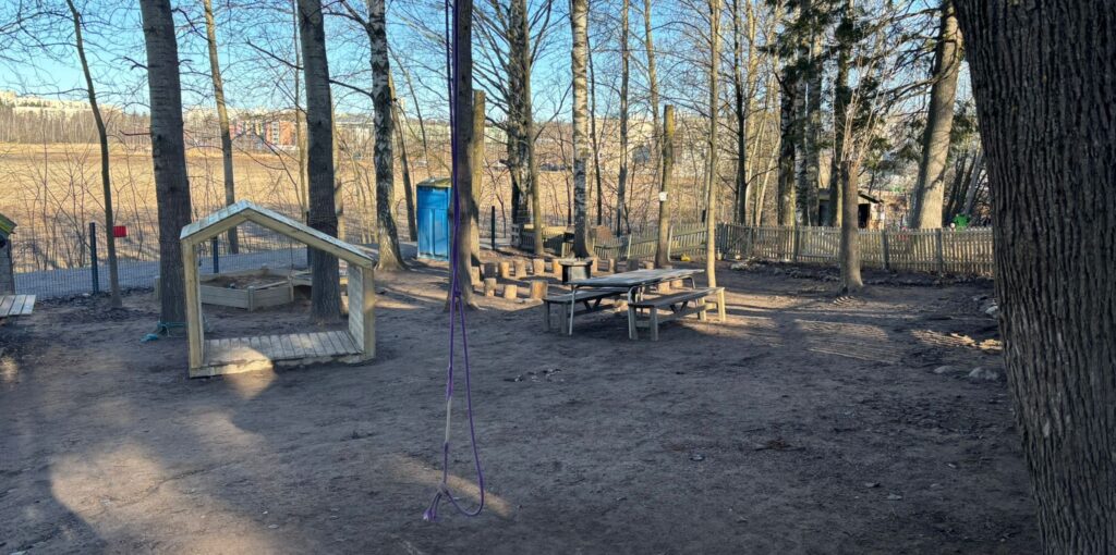Fínska realita nás naučila, že zlé počasie neexistuje. Deti sú vonku väčšinu dňa aj pri teplotách -15 °C. Tajomstvo úspechu tkvie v mimoriadne kvalitnom vrstvení a pogumovaných setoch, ktoré tvoria povinnú vrchnú vrstvu. Po dopoludní v lese sa staršie deti vrátili k odpočinku vonku na dvore, zatiaľ čo najmenší sa presunuli do interiéru na spánok.